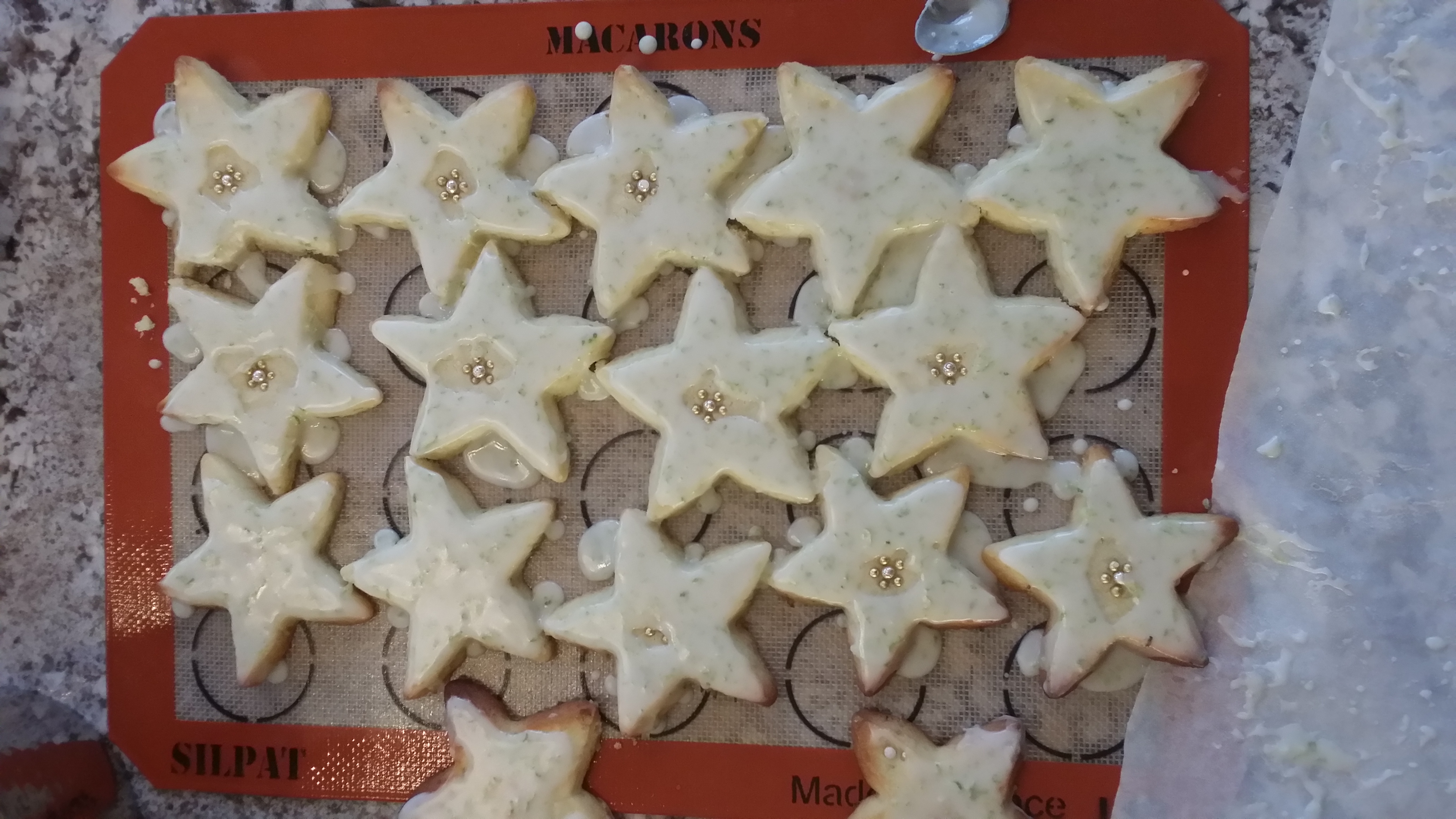 Preheat the oven to 350F, with racks in the upper and lower thirds. Line two large baking sheets with parchment paper. Using a sharp knife, cut dough into 1/4-inch-thick slices.  Place cookies about 2 inches apart and bake, rotating sheets halfway through, until cookies are puffed and barely golden, about 15 minutes.  Transfer to a wire rack to cool.  Spread about one teaspoon Lime Glaze on each cookie.  Unglazed cookies can be kept in an airtight container at room temperature for up to 4 days; but glazed cookies should be eaten the same day (well, that’s not always going to happen and have found storing them, once cold, between sheets of parchment paper, works okay for iced ones – just remove them to a plate before letting them warm up again).